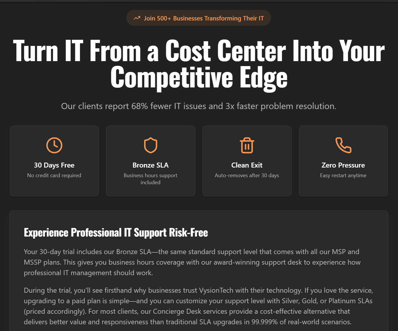 "With the Windows 10 sunset approaching and cyber threats increasing across every sector, organizations need immediate help — not delayed planning," said Andrew Streetman, President & CEO of VysionTech. "This trial lets them experience enterprise-level managed services with zero risk."